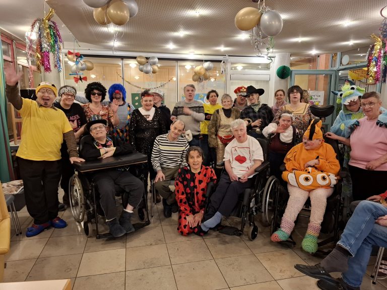 Bei der Lebenshilfe Erding e.V. wurde in diesem Jahr wieder ausgiebig Fasching gefeiert. Der Wohnbereich verwandelte sich in ein farbenfrohes Meer aus Kostümen: Vom klassischen Clown und fröhlichen Hippie über einen leuchtenden Clownfisch bis hin zu einem Minion und einem blauen Monster war alles vertreten. Diese kunterbunte Mischung Sorgte schon beim Betreten den Edeltraud Zimmers für beste Stimmung.